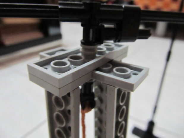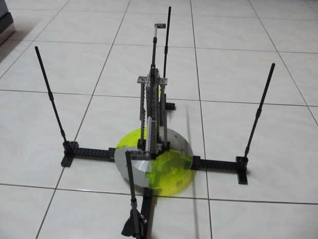 Básicamente tiene una torre central que alberga la goma y cuatro postes alrededor de él para la envoltura y desenvolver.