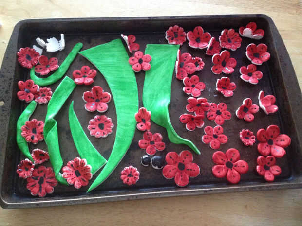 Inicio colorear a esos bebés :) Rojo de las amapolas, negras para la silueta y verde y naranja para mis decoraciones adicionales.
