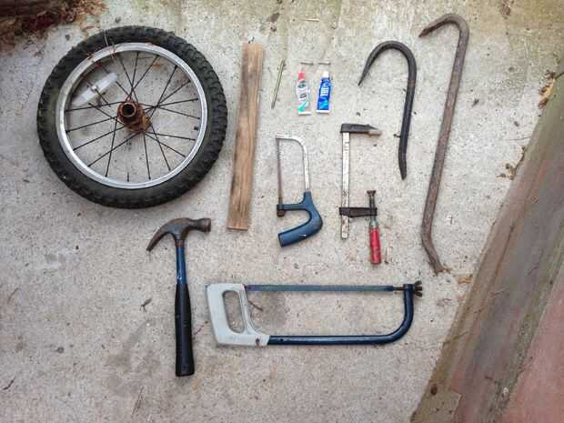 • vieja rueda de bicicleta. el diámetro externo del que usé era de 320mm, pero cuanto más grande mejor (dentro de razón).