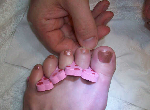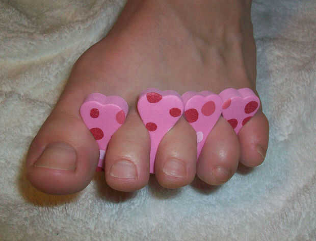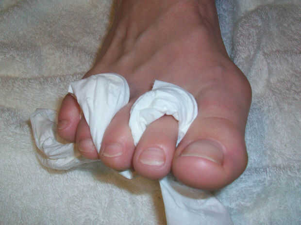 • Separar los dedos del pie usando separador giro OR hasta una longitud de tejido y enróllelo hacia arriba y hacia abajo entre los dedos del pie