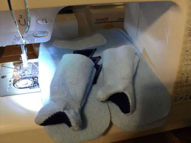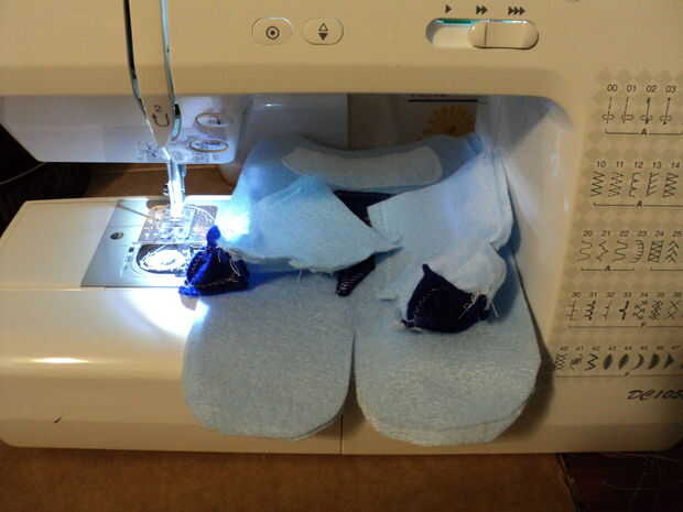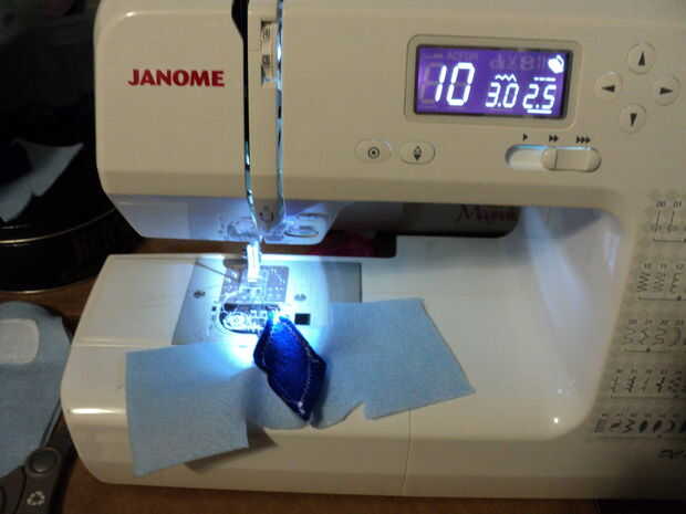 Coser en la parte que representa el lado de la cara donde van los ojos.