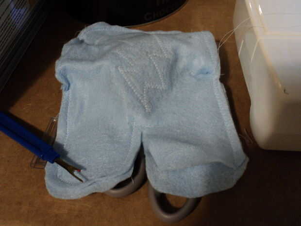 Puesto que el conjunto necesita ser dado vuelta adentro hacia fuera para proporcionar las costuras lisas, la apertura de la pierna que dejó era demasiado pequeña para conseguir todo lo que resultó.