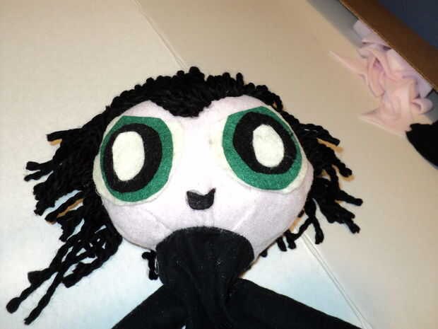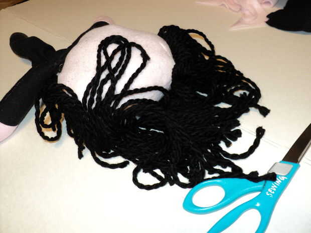 Pegamento caliente las capas y luego a la cara de la marioneta.