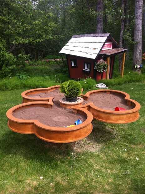 este es un trabajo fácil en el jardín! Esta tabla / sandbox es de madera completamente reutilizado y cubos. Un lado de la mesa es sostenido totalmente por cubos! Una fácil adición muy barata para el jardín!