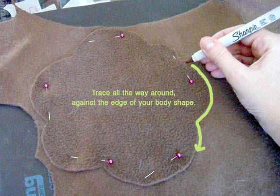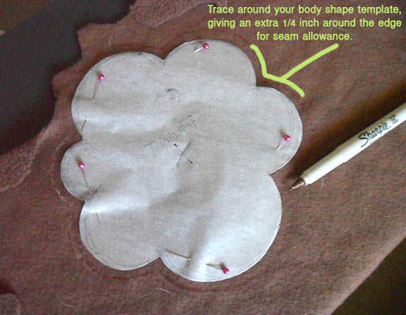 Rastrear todo el camino alrededor con un marcador, dejando una pulgada extra de 1/4 para margen de costura.