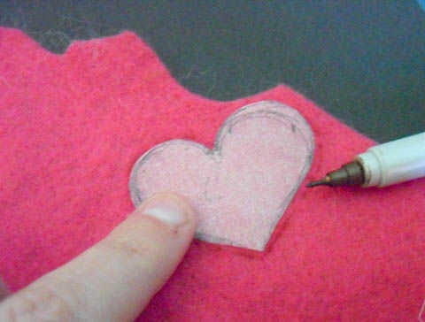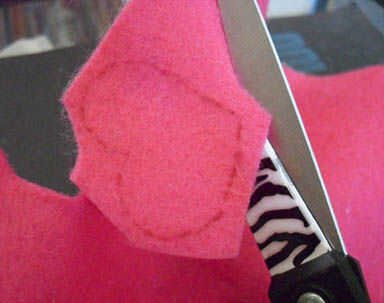 Punta de corte, usted puede obtener una forma más limpia cortando un pedazo áspero alrededor del corazón para separarlo de la hoja de fieltro más grande, luego volver y hacer cortes más precisos en su línea.
