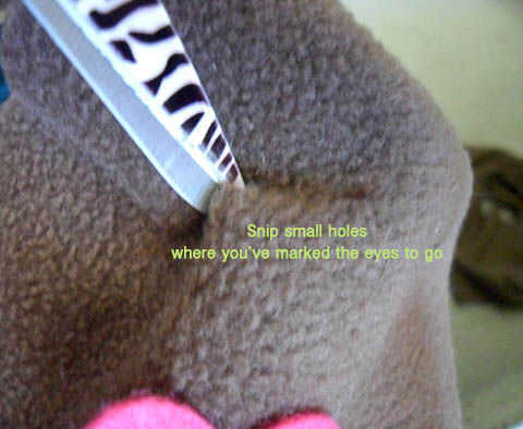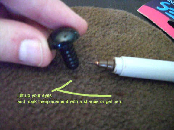 Cuando has decidido donde van los ojos, levantar uno por uno y haga una marca pequeña que indica su colocación.