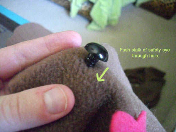 Insertar el tallo de un ojo de seguridad a través de la parte delantera de un agujero.