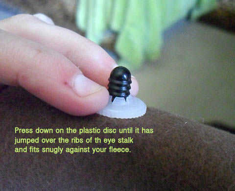 Uno de los discos de plástico que venía en los ojos de seguridad y encaja en el tallo. Estar consciente de la dirección de la plástica el disco bloquea el ojo en su lugar correctamente.