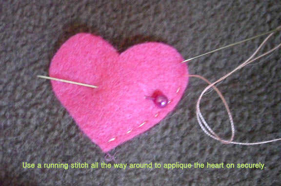 Asegure el corazón fieltro en su lugar con un alfiler.