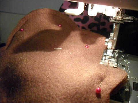 Puede máquina coser la frontera si usted se siente cómodo con la costura alrededor de curvas. Coser 1/4 de pulgada en el borde ya era la reserva que hicimos en nuestros patrones. Configurar mi tensión del hilo para un 2 ya que el forro polar es un poco gruesa.
