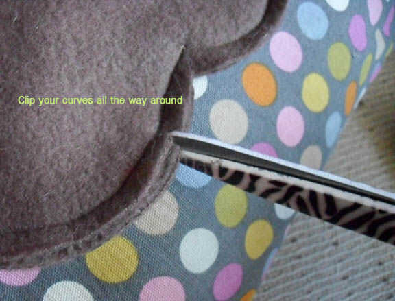 Recordar a tus curvas. Usando las puntas de sus tijeras de tela, hacer pequeñas muescas en su área de margen de costura alrededor de todo el camino. Esto ayudará a que su forma de mantenerse suave y redondo cuando todos aquellos dentro de bits doblan juntos, en lugar de buscar grueso / voluminosos.