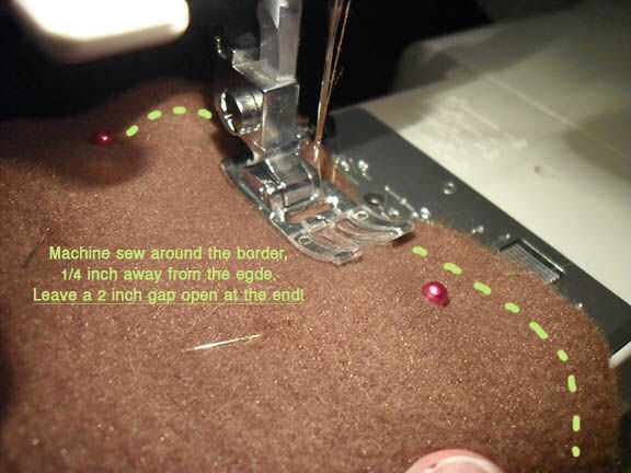 Si no tienes una máquina de coser o son no confortable trabajando con curvas cerradas, puede entregar coser el borde con un punto de funcionamiento. mi mano coser la mayoría de mis proyectos de felpa para un control máximo.