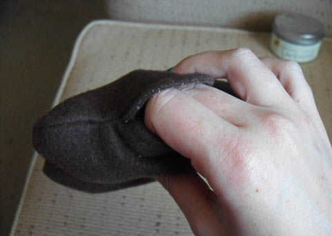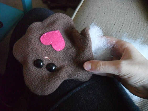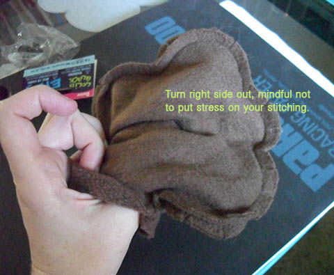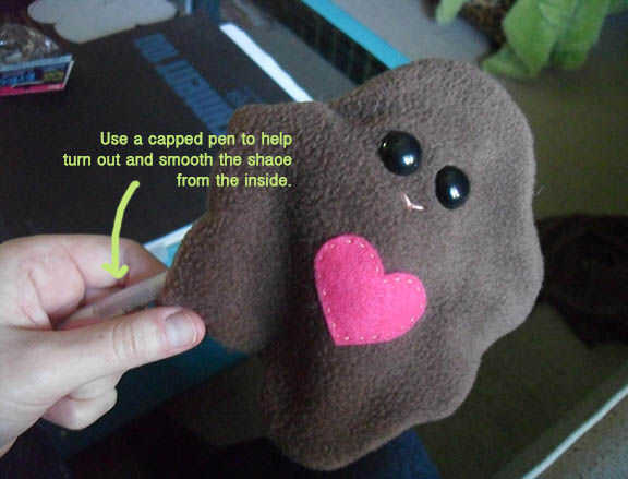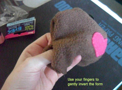 Rollito su forma, siendo suave con las costuras en la boca de la abertura. Puede emplear un lápiz tapado para ayudar a redondear todas sus protuberancias en lugar de intentar jam su mano allí.