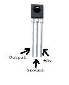 Al configurar tu Arduino como en la foto. Si usted está buscando en la lente negro de su 38kHz receptor IR: