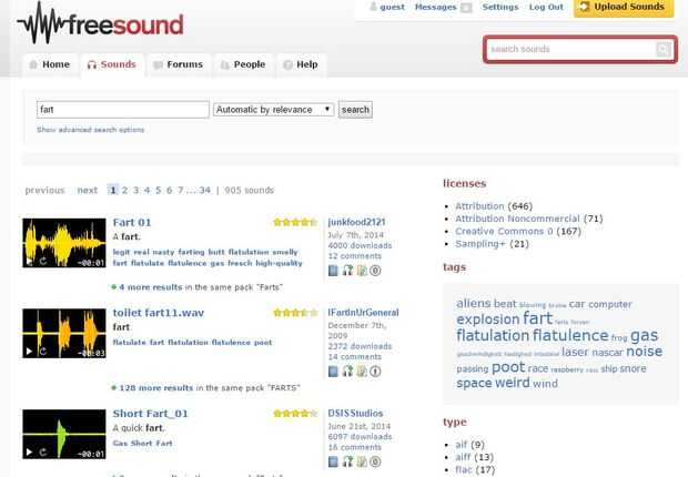 Si vas a freesound.org usted encontrará cualquier número de ruidos muestra libre para su uso en proyectos (consultar la licencia con lo que usted elija). http://Freesound.org/search/?q=Fart
