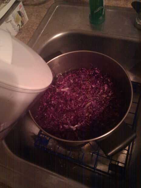 1) hervir una tonelada de repollo rallado en desionizada el agua (no estoy seguro que si esto realmente hizo todo menos utilizar agua filtrada)