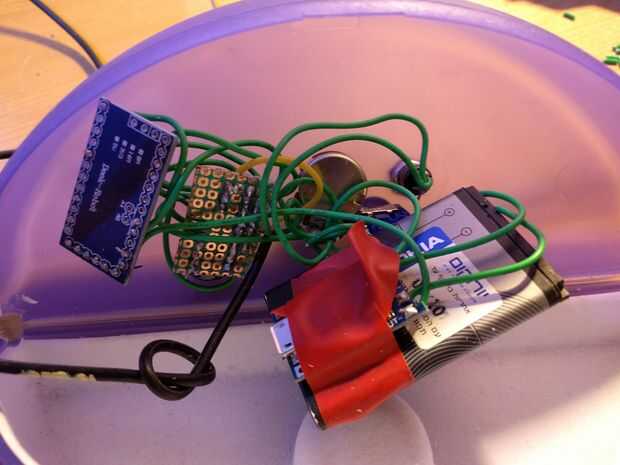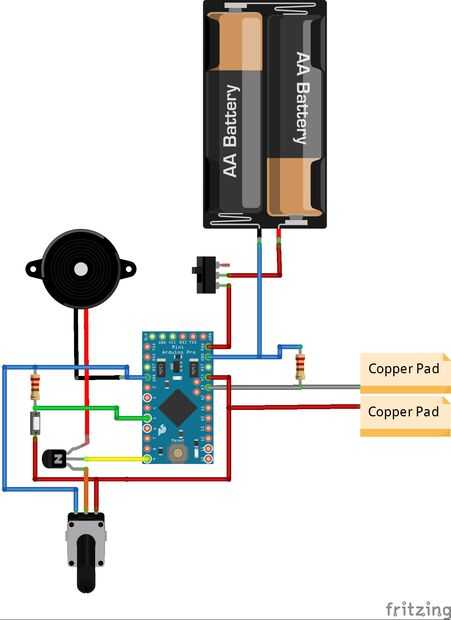 El pee cierra la cirquite entre los dos trozos de cinta de cobre y envía una señal a la cual arduino sonido