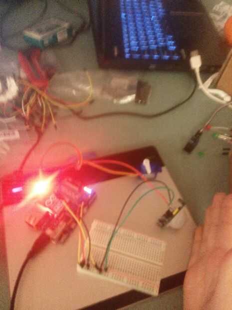 Si todo va bien el sensor de movimiento debe ser capaz de detectar le. Para mis pruebas también incluí un led para ver si el arduino me detectado o no. Este led es ya interior escrito en el código de la "tierra" y "13" ranuras. Me pareció útil tener pero no necesitas hacerlo tú mismo.
