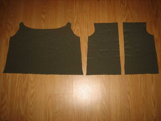 Ahora que se elaboren todas las piezas del patrón de la blusa, es hora de cortar las piezas de tela. Corte 1 blusa delantera sobre el pliegue y 2 piezas de la espalda de la blusa.