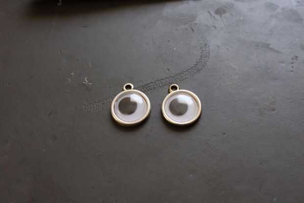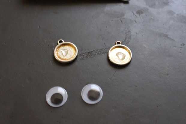 Coloque un pequeño punto de pegamento en el bisel y coloque sus ojos saltones en el bisel. No tarda mucho o incluso si los ojos saltones se ajusta bien, tienes un poco que salen alrededor de los bordes.