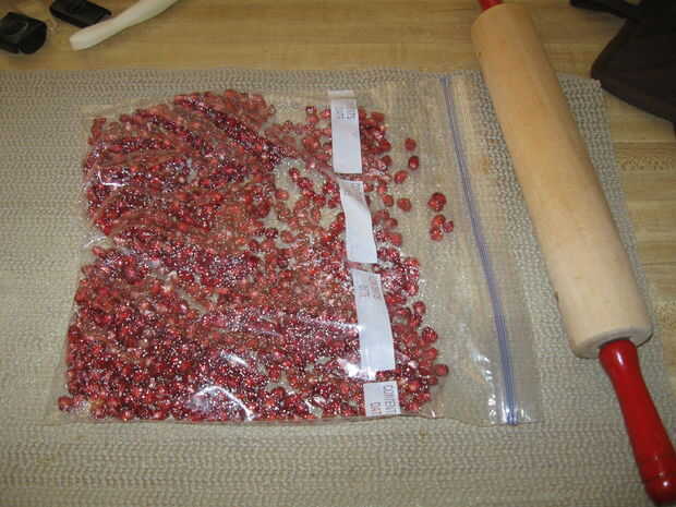 Poner los arilos en una bolsa de plástico de tipo cremallera buena y apretón hacia fuera la mayor parte del aire antes de que cierre. Usted no necesita conseguir todo el aire hacia fuera, pero no desea pelear una burbuja de aire grande o.
