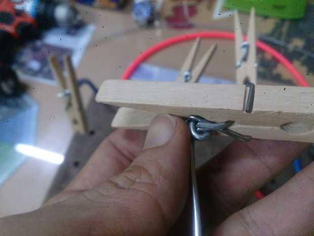 Poner el cable restante a través del orificio de primavera de paño-peg.