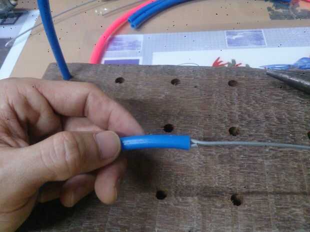 Hacer un nodo en un extremo del cable. Agujero de la Junta es ligeramente más grande que el manguera. Así que hacemos un nodo para que se ajuste firmemente en el agujero. El tubo es elástico, nada para preocuparse. Sólo necesita obtener el nodo en el agujero. Yo simplemente doblarlo hacia atrás un poco. Puedo pulsar con mis pinzas dejando una forma ovalada como el cable de la foto de arriba. Después de cubierto con manguera de combustible, hace un buen agarre en el agujero de la Junta.