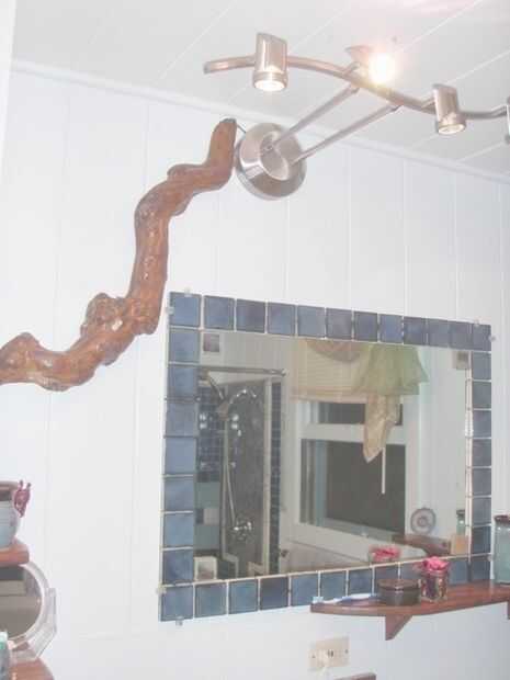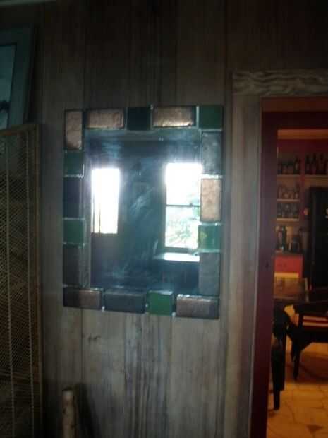 Coloque sobre una superficie lisa (mesa o lo que sea) y un diseño para un marco encoladas con cualquier azulejo de sobra, playa cristal o lo que gustaría ver allí.