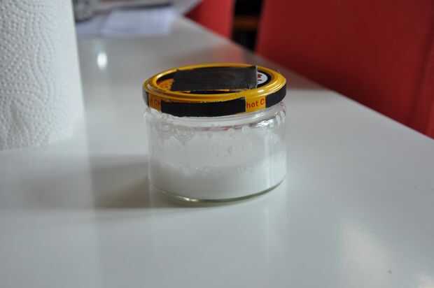 DECKEL auf das Marmeladenglas schrauben und dann gut schütteln.