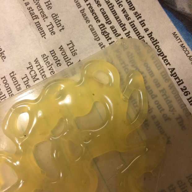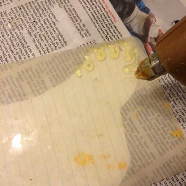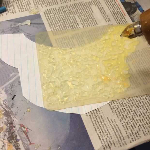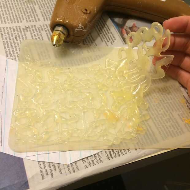 --cuando ponen la estera sobre la forma de su Asegúrese de tener una alfombra pequeña en la parte exterior del lado de la forma que está trabajando (queremos (pegamento caliente) margen de maniobra!).