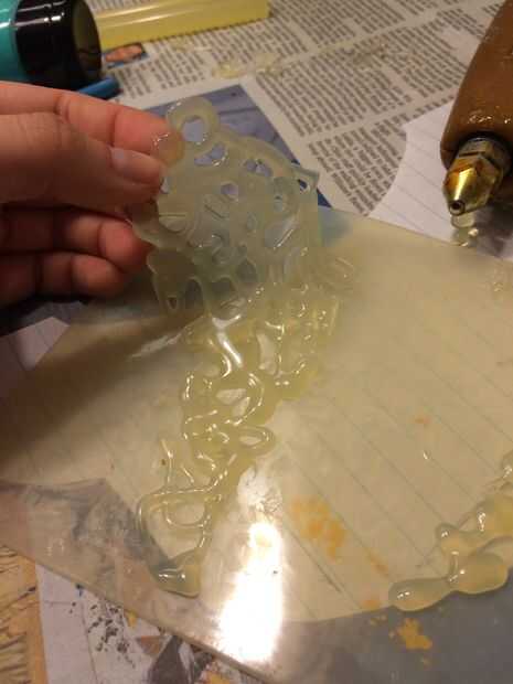 Crear más lazos de pegamento caliente sobre esta sección teniendo en cuenta el contorno de su papel.