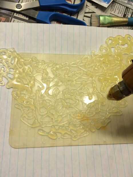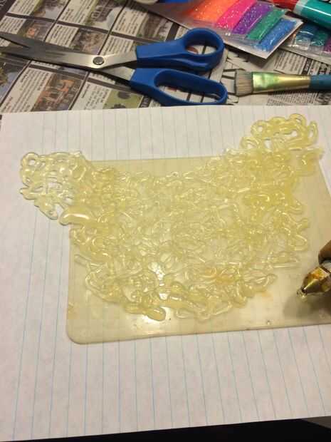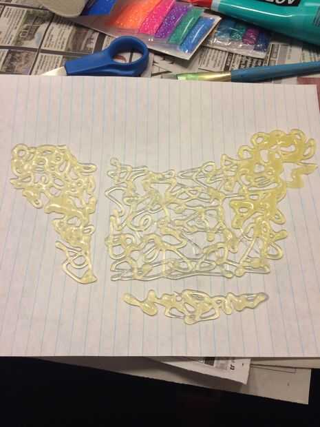 Utilice la pistola de pegamento caliente para conectar estas formas con lazos de pegamento caliente. Las piezas a ser seguro pero todavía mantener la mirada de bucles de pegamento caliente (no quieren que sea una hoja de pegamento caliente. Queremos un diseño). Así que tenlo en mente cuando esté completando este paso.
