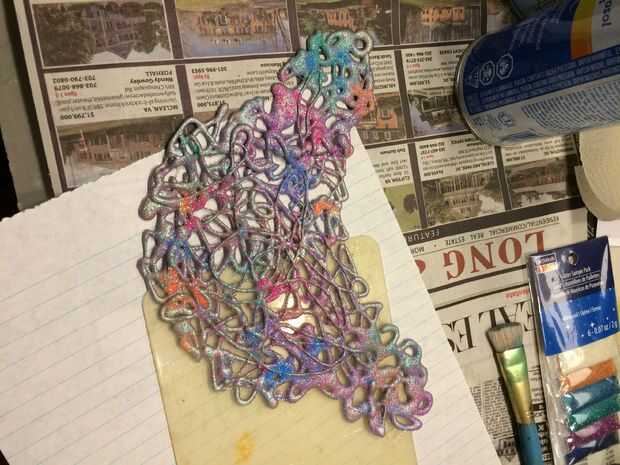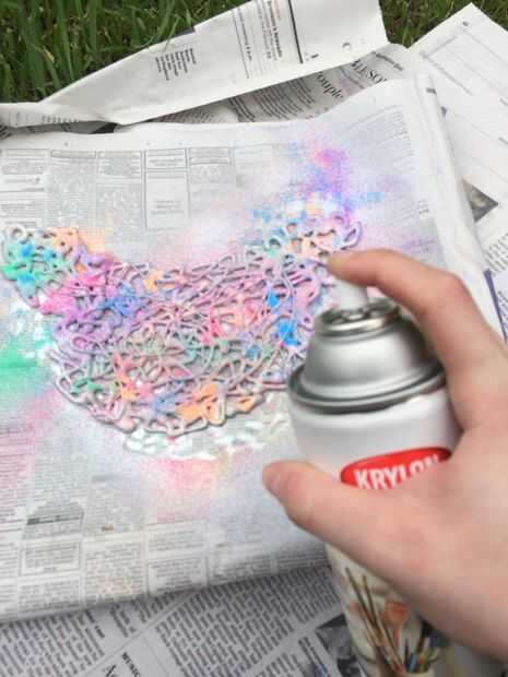 Su forma de aerosol con adhesivo en aerosol y luego espolvorear la purpurina sobre la forma