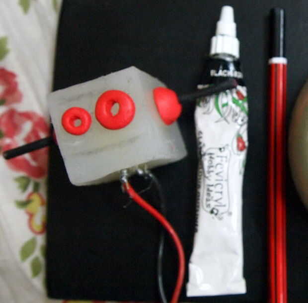 - Ahora abrir un paquete de sugru rojo y hacer que los ojos y el área alrededor de las orejas del robot. (Eres libre de hacerlo a tu manera!... Pero Recuerde que debe mantener una plantilla del robot delante de usted mientras hace esto!).