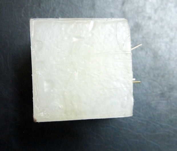 - Cuando el pegamento es de tipo bit seco (digamos después de 5 minutos), coloque algunas L.E.D.s (puse tres) en la parte superior de forma que, los L.E.D.s estén completamente sumergidos en el molde, pero sus piernas están todavía fuera del molde.
