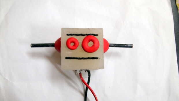 - Utiliza otra vez un rotulador negro para hacer el ojo brow(s) y el lip(s) del Bot!.