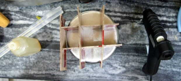 - Ahora en cualquier superficie de metal, poner unas gotas de aceite (para que el pegamento no se pega a él!.) y poner alguna cinta transparente en el interior de su molde.