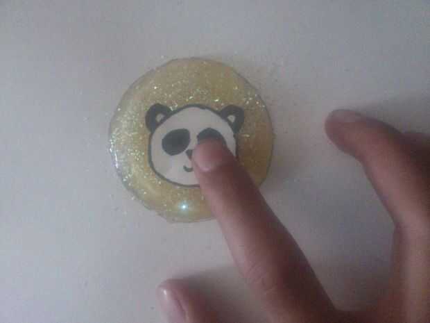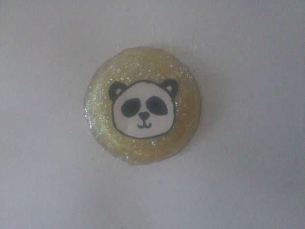 Después de aplicar el brillo, meter el panda (o etiqueta) en el centro.