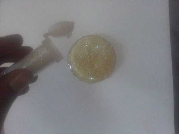 Mientras que el pegamento es pegajoso, aplique brillo de su elección. Puede utilizar diferentes colores para hacer diseños y patrones de frío. Esta parte es realmente suya.