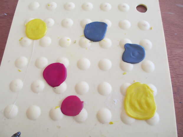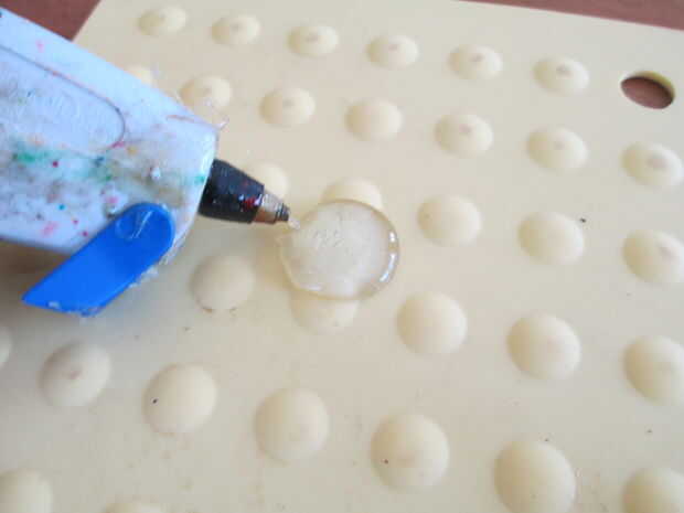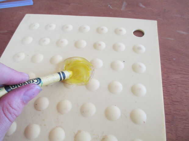 1. Comience apretando la piscina un cuarto de cola en la manopla. Mientras el pegamento está caliente frota la tiza sobre el pegamento, hasta fina. Retire cuando se seca. Yo acabé necesitando aproximadamente 3 piezas amarillo, 2 gris y rojo 2.