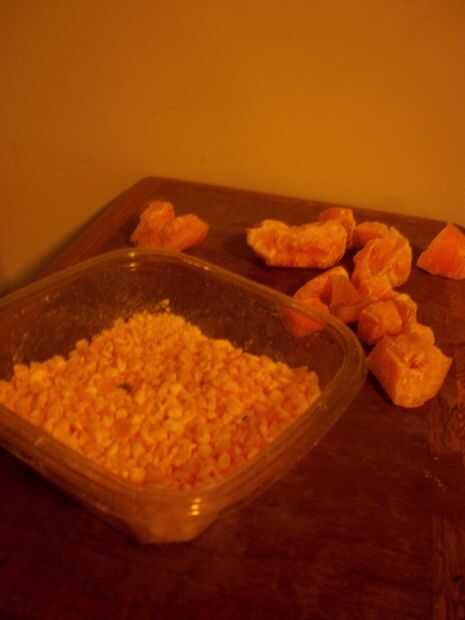 1. aplastar la cera en pequeños trozos. Esto puede ser más trabajo entonces merece la pena (especialmente con velas pequeñas), pero la cera se derretirá más rápido y más uniformemente.