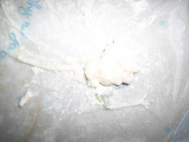 Tome su toalla y colóquela en la taza de papel. Luego empuje hacia abajo oncenter de la toalla en la taza, haciendo una pequeña hendidura. Vierta en la mezcla de leche y vinagre y deje que fijó para un par de segundos. Luego recoger la toalla con los terrones (cuajada) en él y rodar, como en la imagen. Apriete la parte inferior para drenar el líquido (suero). Abrir la toalla y póngala en donde trabajas. Tome el palito y raspar en una pila. Añadir una pizca de bicarbonato de sodio y agitar durante 30 segundos. Después de un minuto que se volverá marrón claro y la mayoría de los grumos desaparecerán. Ahora se hace. Aplique una capa delgada del pegamento sobre lo que estás pegando. Un poco va un largo camino.