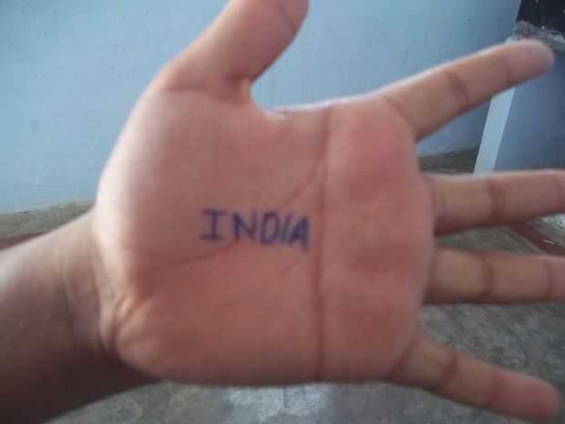 En primer lugar, lávese las manos limpia y séquela. Ahora escribe cualquier palabra en tu mano con un lápiz como se muestra en la imagen de arriba.