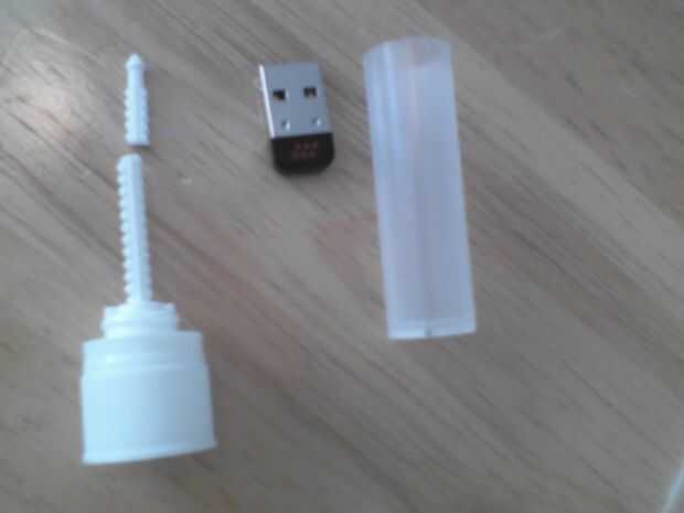 Usando el dongle como guía, cortar el tornillo a una longitud que permite el dongle para que quepa dentro del tubo sin meter a la parte superior (cuando el tubo está conectado a la base del tornillo).