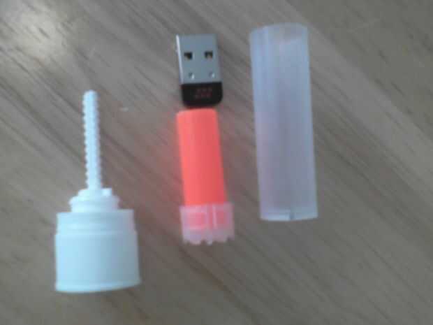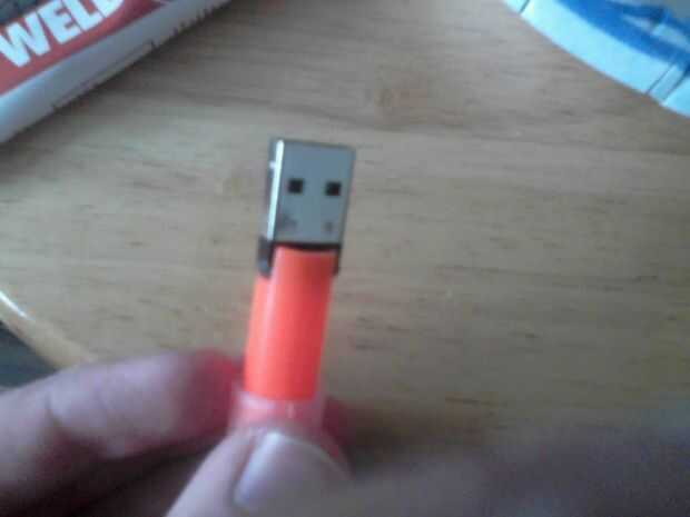 Luego, corte una muesca en la parte superior del tubo del marcador para el dongle para sentarse modo que la parte superior del tubo del marcador se alinea con el comienzo del metal en el dongle. La dremel ayudará mucho aquí, pero se puede hacer con las tijeras y cuchillo del exacto. Todas las piezas se pueden ahora poner juntos en este momento para asegurarse de que se ve y funciona de la manera debe antes JB soldadura juntos.