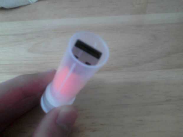 Pegue el tubo de nuevo en el soporte de la cola y reunir nuevamente las piezas de palo de pegamento y uso el dongle para asegurarse de que la longitud del tubo marcador es buena. Cuando el dongle está al lado del tubo de cola con su parte superior al ras con la parte superior del tubo de cola, la parte superior del tubo del marcador debe estar en consonancia con el lugar donde el metal con plástico en la mochila (un poco por debajo que es mejor que sobre). A lo 4 cm será demasiado largo, así que recorte hacia abajo hasta que esté en la longitud deseada (3 cm terminó siendo bueno para mí).