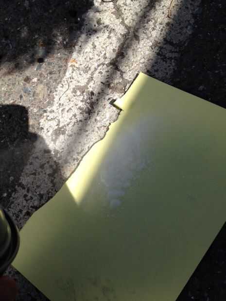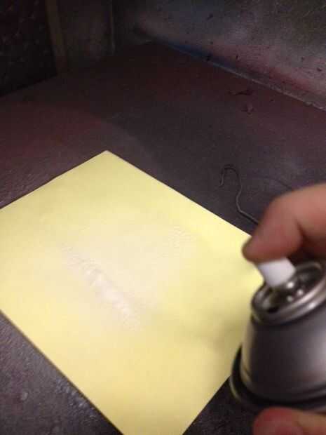 Otra cosa que puedes hacer es rociar al aire libre. Si el clima es agradable, esto puede ser una opción viable. En la foto de la escena exterior, he demostrado lo que quiere evitar con acumular demasiado spray en su material.