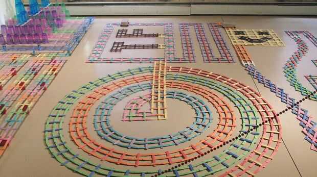 Si desea ver ejemplos de muestra bomba de palanca de gran escala, recomiendo revisar la obra de Tim Fort (el rey cinético). Tim Fort fue pionera en este arte e inventado la mayoría de los diseños que son populares hoy en día. También ha realizado algunos de los despliegues de la bomba de palo más grande y más impresionante jamás creados. Él incluso ha obtenido a varios Guinness récords mundiales para esto.