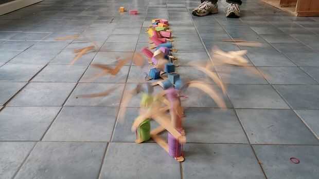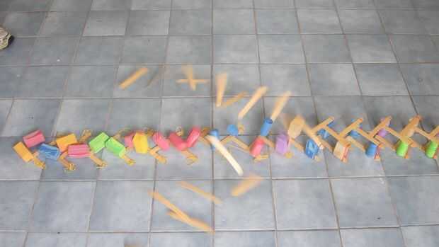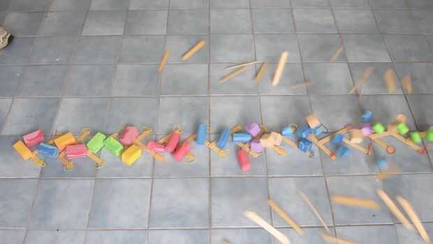 Para hacer una bomba de reacción en cadena de palancas inteligentes, arreglarlos para que la final (el lado que quiera separar) de cada palanca se cabe entre los palos de otra palanca inteligente. Esto puede continuar en una larga serie para hacer una bomba de reacción en cadena. Bandas de caucho más puede agregarse para aumentar la fuerza explosiva. Varias palancas inteligentes pueden caber dentro de un par adyacente. Esto le permite a múltiples cadenas en múltiples direcciones. Apoyos adicionales tales como vasos de plástico y pelotas de ping pong pueden añadirse en la parte superior de la palanca para mayor efecto. Cuando la palanca se detona, estos apoyos serán lanzados en el aire creando una pantalla visual mucho mayor.
